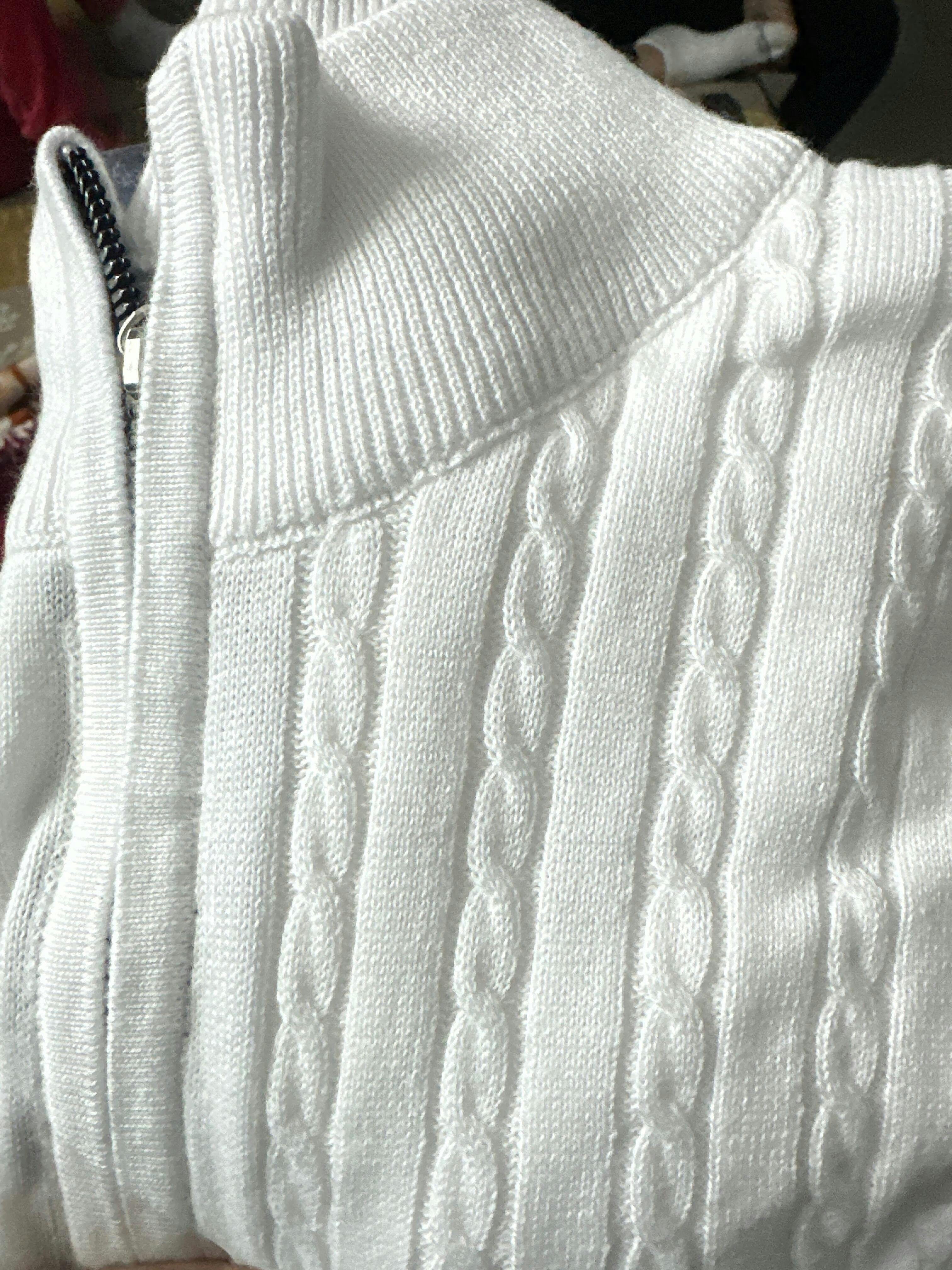 This t-shirt features an all-over cable knit texture that adds depth and a premium feel, while the white colour keeps the look fresh, versatile, and easy to style with almost any bottom. The half-zip polo collar lets the wearer adjust the neckline from neat and closed to relaxed and open, making it suitable for brunches, dates, casual Fridays, and evening outings.