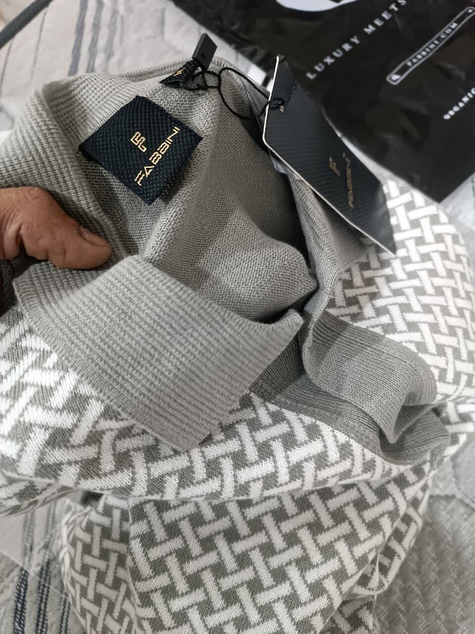 Men’s Pista Grey & White Geometric Knit Polo