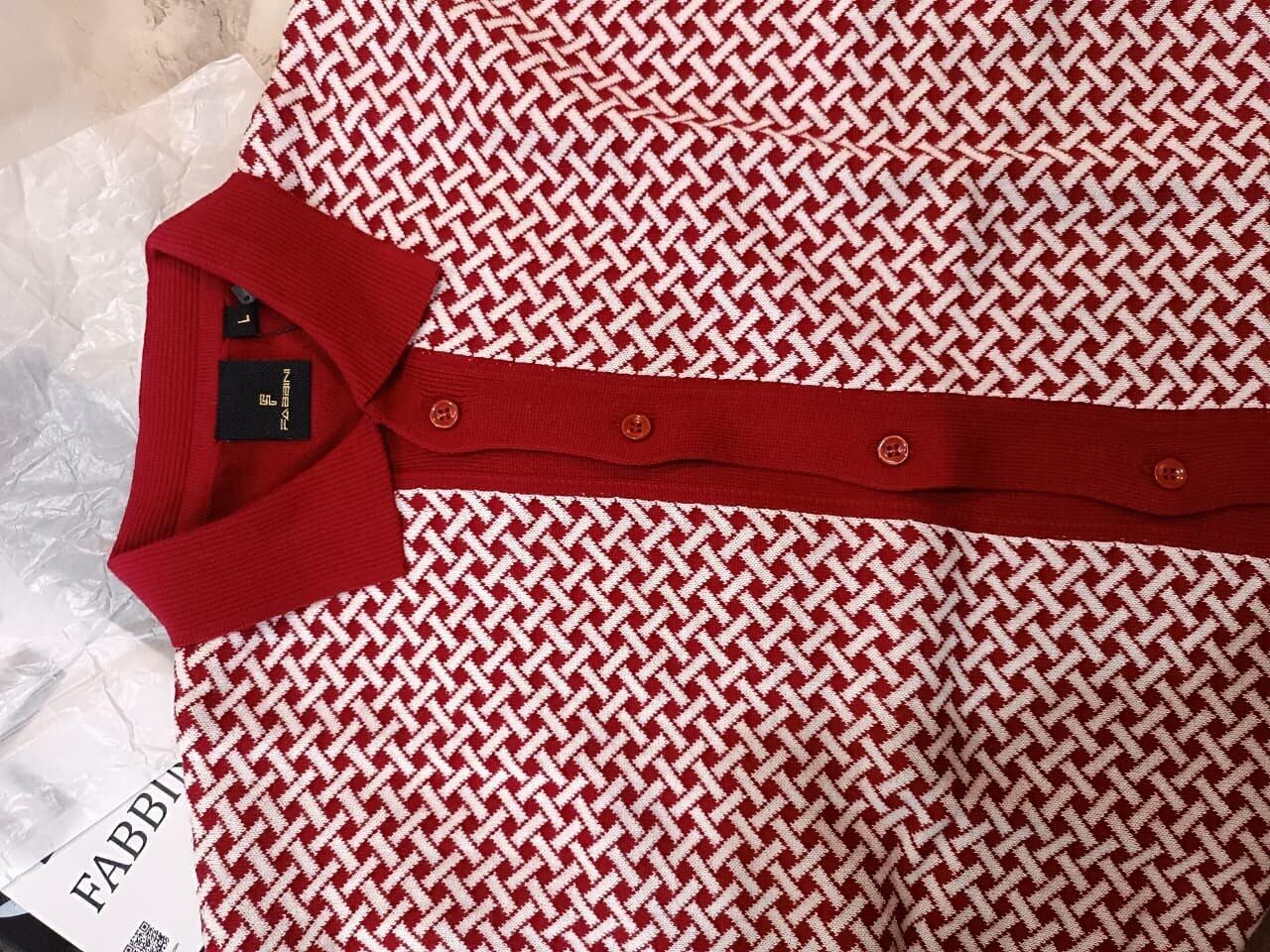 Command attention with this maroon short-sleeve knit polo, intricately woven with a bold white geometric pattern for a standout texture and visual depth. The rich maroon collar, placket, and sleeve cuffs add structure and contrast, giving this shirt a refined, retro-inspired look. Made from a soft, breathable knit fabric, this piece blends vintage flair with modern tailoring — perfect for upscale casual outings or statement weekend style.