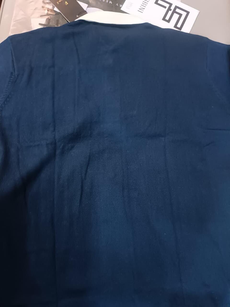 Make a statement with this effortlessly stylish navy blue polo shirt featuring a white textured front panel. The unique zigzag knit pattern adds a sophisticated retro vibe, while the full button-down front and ivory spread collar deliver a refined, classic look. Designed for both comfort and versatility, this shirt transitions seamlessly from daywear to evening outings.